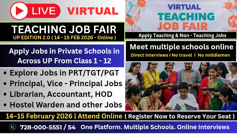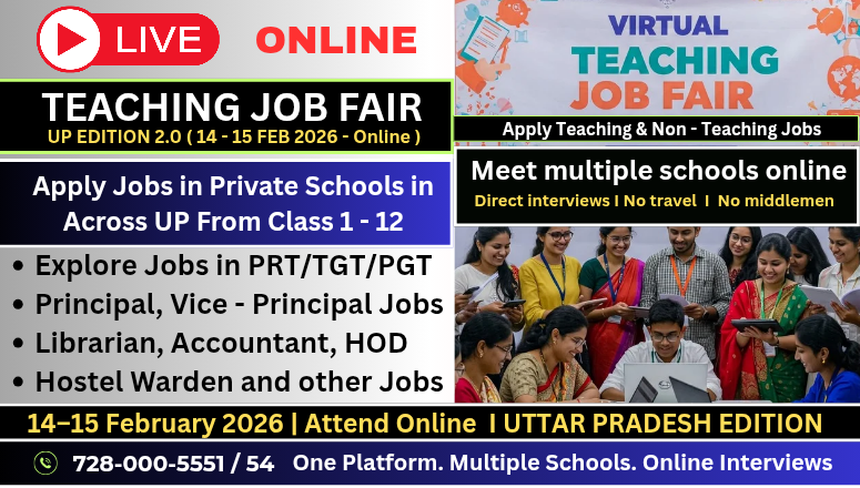 Teachers and academic professionals from any location can apply for teaching, leadership, and academic roles and explore career opportunities in Uttar Pradesh’s private education sector without the need to travel.
