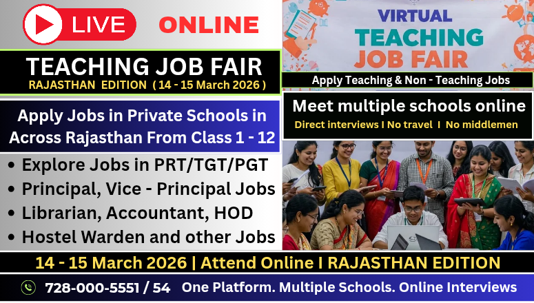 Teachers and academic professionals can explore teaching, leadership, and academic opportunities in Rajasthan’s private education sector without the need to travel, making the hiring process accessible and inclusive.